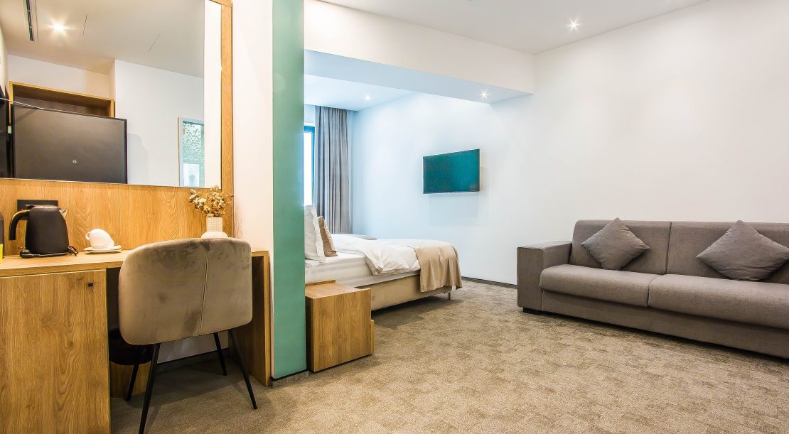 Camera twin cu terasa si canapea extensibila